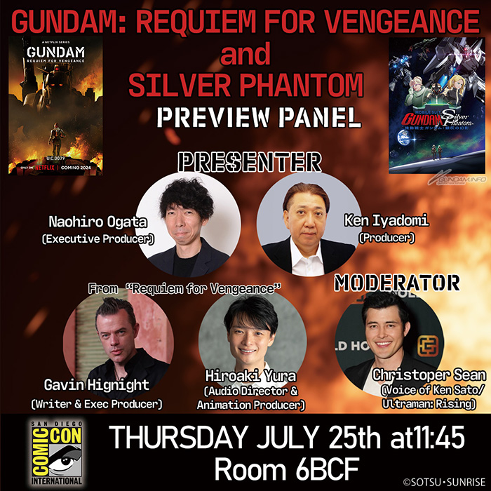 7月25日(木)から28日(日)にかけて、アメリカ・サンディエゴ コンベンションセンターで開催される「San Diego Comic-Con 2024」(SDCC2024)にて、ガンダム特集パネル「GUNDAM: REQUIEM FOR VENGEANCE and SILVER PHANTOM PREVIEW PANEL」の実施が決定した。