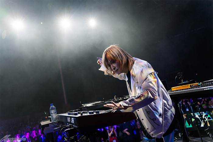 さらに、音楽から動画をリアルタイム生成するシステムを本イベントにて初公開。『機動戦士ガンダム SEED FREEDOM』主題歌「FREEDOM」、劇場用長編アニメーション『ストリートファイターII MOVIE』テーマソング「恋しさと せつなさと 心強さと」、『シティーハンター』エンディングテーマ「Get Wild」などを披露し、ライブ会場を埋め尽くした約3,000人が大合唱となった。