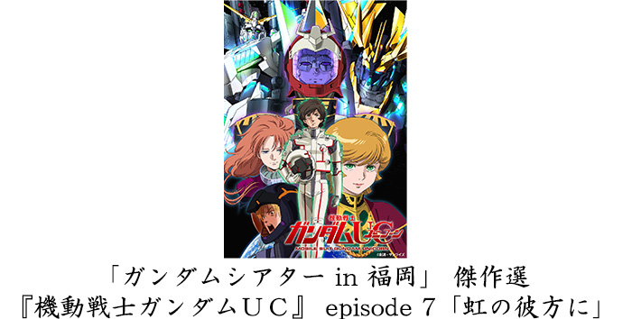 また、12月8日(日)にはTOHOシネマズ ららぽーと福岡で「ガンダムシアター in 福岡」 傑作選と題し、『機動戦士ガンダムUC』 episode 7「虹の彼方に」を上映する。