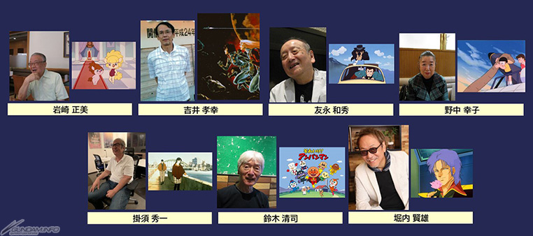 今回は、『機動戦士ガンダムZZ』のマシュマー・セロをはじめ、甘くセクシーな声で視聴者を魅了してきた声優の堀内賢雄さんのほか、劇場版『機動戦士ガンダム』三部作ほか制作一筋で作品を支えたプロデューサー・岩崎正美さん、1995年から株式会社サンライズ(現:株式会社バンダイナムコフィルムワークス)の社長としても腕を振るったプロデューサー・吉井孝幸さん、『機動戦士ガンダムTHE ORIGIN』で原画を担当するなど数々の活力あふれるアクションシーンを描いてきたアニメーター・友永和秀さんら7名に決定した。