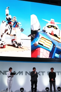 ここでガンダムパビリオン内で体験できる新作映像『GUNDAM: Next Universal Century』のPVとメインビジュアルを初公開(詳細記事)。はるか昔にモビルスーツを使った戦争があったという設定を前提として、もしも未来にAI技術が今よりさらに発展し、モビルスーツをAIが操縦しながら平和利用されていたとしたらどうなるか、という映像が制作されている。