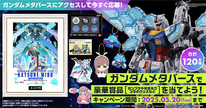 今回の期間限定オープンを記念し、「EXPO2025 1/144 RX-78F00/E ガンダム(EX-001 グラスフェザー装備)」や初音ミクライブ記念メインビジュアルを出力したプリモアートほか豪華商品が合計120名にあたるキャンペーンを実施中。