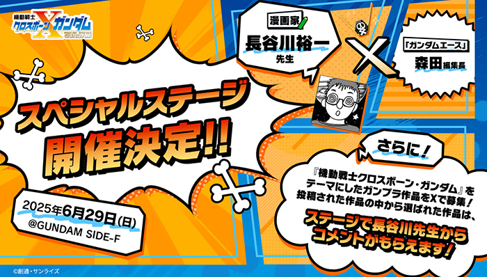 さらに「クロスボーン・ガンダム」シリーズをテーマにしたガンプラの作例投稿をXの投稿で募集し、長谷川先生に直接コメントをもらうコーナーも実施予定。