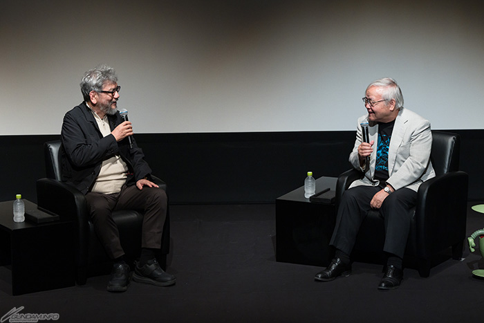 青森県立美術館で好評開催中の展覧会「描く人、安彦良和」の関連プログラム「安彦良和×庵野秀明トークショー付き上映会」が、5月24日(土)に開催された。