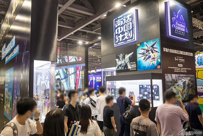 隣接のGUNDAM CHINA PROJECTブースでは、2021年に中国の「三井ショッピングパーク ららぽーと上海金橋」前に設置予定の実物大フリーダムガンダム立像の1/30雛形モデルを展示。