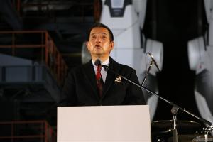 そして、この“動くガンダム”を出発点として、多くの世代の人々と一緒に次のガンダムを語ってゆきたい、次の技術を語ってゆきたいとし、「この“動くガンダム”の一歩が、次の技術の一歩に、そして明るい未来への一歩になれば」と願いを述べた。