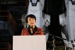 また、来賓の林 文子 横浜市長は「世界初の壮大な夢の舞台に横浜が選ばれて大変光栄」としたうえで、横浜らしい港の景観をバックにそびえたつガンダムを、ぜひ多くの人に間近で見上げて欲しいと語った。