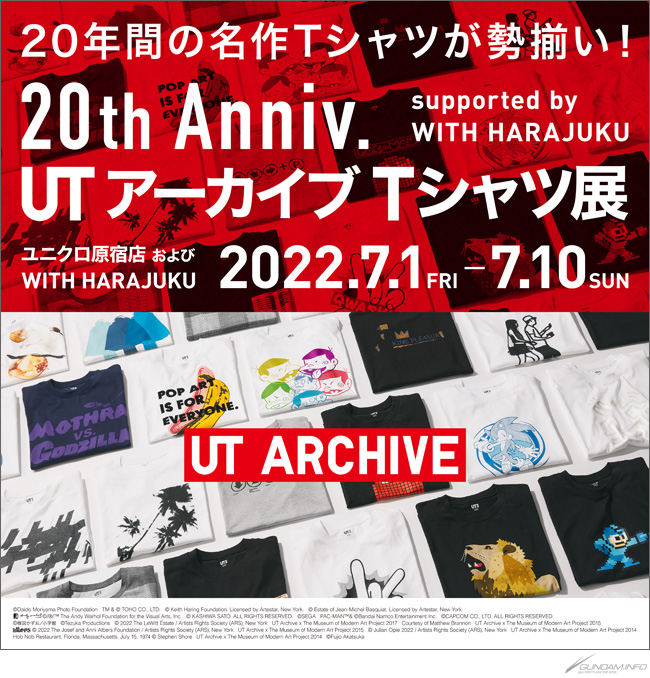 「UT」が20年目を迎えるメモリアルイヤーとなる今年、「UTアーカイブプロジェクト」を始動。その第1弾として、20年の軌跡を振り返る展覧会「20th UTアーカイブ Tシャツ展 supported by WITH HARAJUKU」を、7月1日(金)から10日(日)の期間限定で開催する。入場料無料。