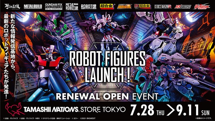 魂ネイションズの直営フラッグシップショップ「TAMASHII NATIONS STORE TOKYO(TNST)」は、本日7月28日(木)より、最新のロボットフィギュア情報を発信する展示イベント「ROBOT FIGURES LAUNCH!」を開催する。