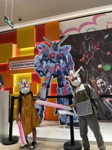 また、スタンプラリーは、ららぽーと上海金橋1F受付で会員登録をしてエントリーすると、スタンプラリー台紙とフリーダムガンダムマスク、ビームサーベルバルーンがプレゼントされ、全館に設置された4つのスポットを巡りコンプリートすると、さらに1周年記念バッジももらえる、という豪華な内容となっている。