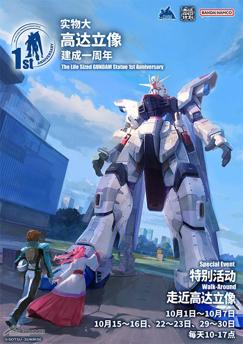 イベントは、ららぽーと上海金橋と「実物大フリーダムガンダム立像」が、今年4月28日(木)に1周年を迎えたことを祝うもので、ウォークアラウンド、立像新演出、スタンプラリーが開催されている。