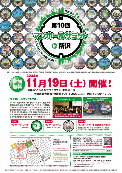 第10回となる今回は、「COOL×COOL=超COOL?!」をテーマに、下水道施設跡地に建設されたクールジャパンの拠点「ところざわサクラタウン」をメイン会場として、COOLなマンホール蓋の魅力を伝えていく。