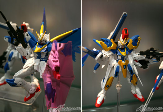通常形態の「V2ガンダム」(左)に、強化装備「アサルトパーツ」「バスターパーツ」が付属し、「V2アサルトバスターガンダム」(右)までの、全装備形態が再現可能となっている。