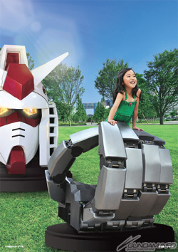 『機動戦士ガンダム』アニメ放映30周年を記念して製作された全高18メートルの実物大ガンダム立像は、緑あふれる都市再生と魅力あふれる街づくりを目的とした「GREEN TOKYO ガンダムプロジェクト」開催時の2009年夏に、お台場・潮風公園で初めて展示され約415万人を動員。