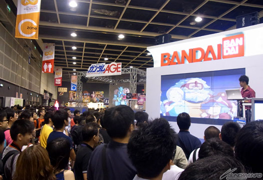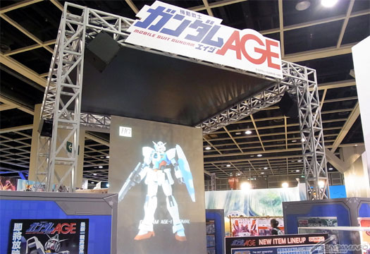 バンダイブースでは新TVシリーズ『機動戦士ガンダムAGE』を中心に、ガンプラやフィギュアなどの関連アイテムを展示。香港でも高い関心を集めており、ブースには多くの人が訪れた。