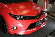 車両を覆っていたカバーが外されると、艶消しの赤い車体に、ジオン公国のエンブレム、随所にコーションマークが施された「シャア専用オーリス」が姿を現し、その圧倒的な存在感を写真に収めようと、誰もが夢中でシャッターを切っていた。