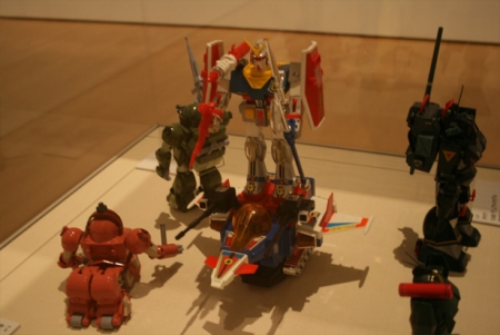 ▲大河原氏のメカデザインを元に作られた、当時の玩具もあわせて展示されている。