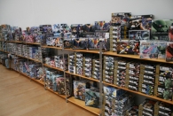 ▲会場に設置された物販コーナーでは、ガンプラをはじめとした今回の展覧会限定のグッズが並ぶ。そのほか大河原氏がデザインしたMSのガンプラも一挙勢ぞろい。