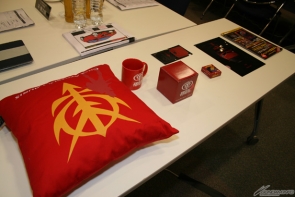 ▲会場には「ジオニックトヨタ」や「ガンダム」に関する様々な資料が並ぶ。