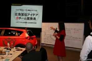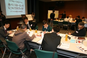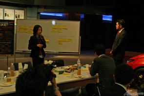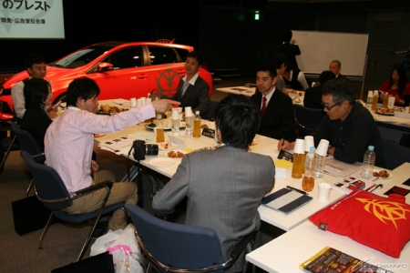 ▲いよいよスタートした会議では、2チームに分かれ、車両・パーツの販売名称に関するアイデアや、もっと多くの人にこのプロジェクトを知ってもらうためにどうすればよいかなど、和やかな雰囲気の中で様々な議論が交わされた。実用的なグッズや、“限定”のものが欲しい、といった女性目線の意見も飛び出す。