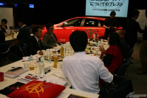 会議には、ジオニックトヨタ社員特設サイトにて行われた、「あなたの欲しい“シャア専用オーリス”のアイデア募集キャンペーン」の応募者の中から選ばれた計12名の社員が参加。全国約2.5万人の社員の希望を担った参加者それぞれの「シャア専用オーリス」に対する熱い想いや斬新なアイデアが飛び交い、終始白熱した会議となった。