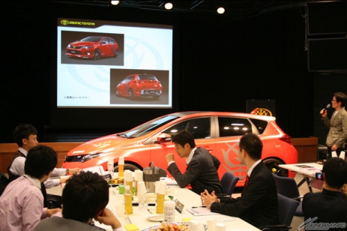 ▲続いて行われた名古屋会場では、ショールームに置かれた「シャア専用オーリスCONCEPT」が参加者をお出迎え。