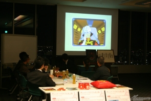 ▲名古屋の夜景が一望できる会場へ移動し、シャア少佐からの激励のメッセージが上映されると、いよいよ会議がスタート。