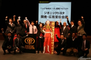 今年1月9日(水)に設立され大きな話題を呼んだ、バーチャルカンパニー「ジオニックトヨタ」。その社員の中から選ばれた人々を交え、「シャア専用オーリス」市販化に向けてのアイデアや意見を発表し合う「ジオニックトヨタ社内会議」が東京と名古屋の2会場にて実施された。
