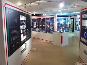 ▲ユニコーンガンダムを彷彿とさせる赤と白のパネルが配置された会場はまさに「UC」一色!