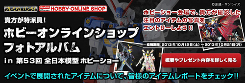 プレミアムバンダイ「ホビーオンラインショップ」で実施中のユーザー参加型企画「ホビーオンラインショップフォトアルバム in 第53回 全日本模型ホビーショー」では、投稿された写真の第1回目が本日公開された。