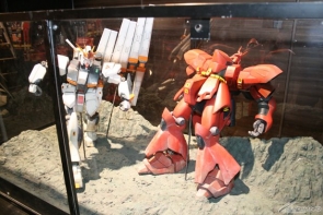 また、根強い人気を誇る“赤い彗星”こと「シャア・アズナブル」を特集したコーナーでは、これまでに発売された『シャア専用』グッズの数々や、その乗機である「シャア専用ズゴック」、「ジオング」、「サザビー」を1/10サイズで見ることができる。