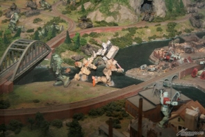 ▲「一年戦争」を舞台にした巨大ジオラマは、随所でドラマが展開されいつまでも見ていたい出来栄えだ!