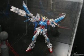 ▲1/10スケールのストライクフリーダムガンダムに加え、HDリマスター版で新登場した「パーフェクトストライクガンダム」や「ストライクルージュ オオトリ装備」のMGも展示!