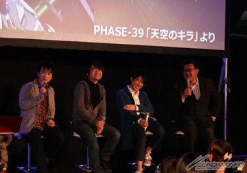 この日の司会を務めたニッポン放送の吉田尚記アナウンサーが「3人は超仲良し」と言うほど、親密感を滲ませる3人。まずはストライクフリーダムのコクピットで記念写真撮影をしてからステージへ。福田己津央監督も含め、4人が壇上に揃ったところで、イベントは本格的にスタートした。