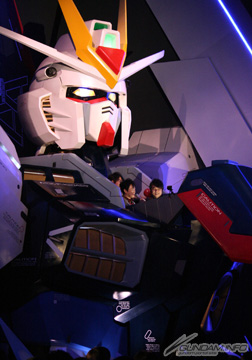 ▲『機動戦士ガンダムSEED DESTINY』でキラ・ヤマトが搭乗するストライクフリーダムの実物大胸像が見下ろす特設ステージでのイベント開催とあってSEEDファンの胸は高鳴る。