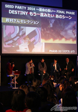 つづいて、イベント開催時には未放送だったリマスター版「PHASE-50」を登壇者4人が生コメンタリーをしながら、参加者とともに観覧。福田監督がいろいろ話しながらも、ついつい見入ってしまう保志氏と石田氏、そして鈴村氏。そして、気がつけばまたもキラへの集中攻撃へ。「何を言っているかわからなかった」と言われてしまうほど、キラの奔放さは作品中でも色濃く描かれ、「キラを演じられるのはキラとシンクロしている保志氏だけだ」と、会場中が感じているような空気に包まれていた。
