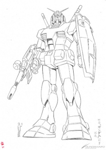 企画立案の過程で描かれたキャラクターやメカニックのラフデザインの一部。キャラクターの初期デザインや、その後の完成形とはイメージの異なるガンダムの原案を見ることができる。ガンダムは当初全長3メートルほどの大きさを想定していたが、後に18メートルに変更された。決定稿に至るまでに、さまざまな修正が加えられている。