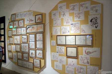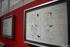 ▲制作資料だけでなく、大河原氏、安彦氏、中村氏が描く原画の数々も展示。あわせて展示されているセル画は、保存の関係で2週間ごとに入れ替えられるとのことだ。