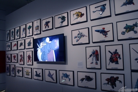 ▲大河原邦男氏の描く、圧倒的な数のモビルスーツが展示される。