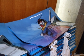 ▲初期案となる「ガンボーイ」の企画資料をはじめ、キャラクターやメカデザインの原案などが展示される。