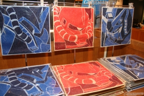 地球連邦軍とジオン公国軍のMSがそれぞれ特徴的なタッチで描かれた手ぬぐいも!