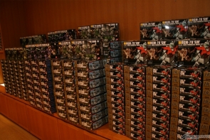 ▲ガンプラを1,000体組み立て、翌年の東京会場でインスタレーション展示を行う「ガンプラ大作戦」のコーナーでは、数多くのガンプラたちが「ガンプラ組立セット券」を持つ来場者をお出迎え。