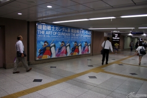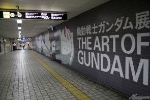 ▲なんば駅の四つ橋線と千日前線の連絡通路には、原寸大の横たわるガンダムが出現!