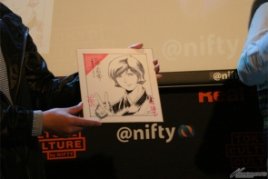 そしてイベントでは来場者へのプレゼントとして、南北先生描き下ろしのサイン色紙がプレゼントされるじゃんけん大会も実施。当初の予定では5枚だったが、描き損じた場合のために2枚余分に色紙を渡したところ7枚描いてくれたということで、会場は大盛り上がりとなった。