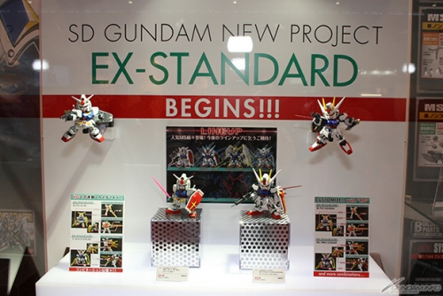 ▲SDガンダムの新プロジェクトとして発表された「EX-STANDARD」シリーズは、従来に比べて可動域が広がりスタイリッシュなフォルムとなるほか、HGとの連動・組換ギミックが導入されるぞ!