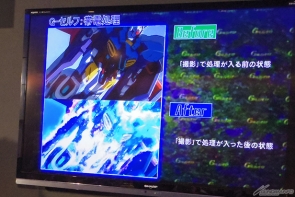さらに、トークショーでは旭プロダクションの脇氏が登場して、本編でモビルスーツにどのような撮影処理が加えられたかを紹介。今回は、安田氏と形部氏がデザインしたモビルスーツに分けて、それぞれ処理前と処理後の映像を一緒に見せる、分かりやすいものとなっていた。