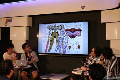 トークショーには前回の「メカ編」に引き続き、メカニカルデザインの安田 朗氏と形部一平氏がゲストとして登場。さらに、デザインワークスのコヤマシゲト氏も特別に登壇した。
