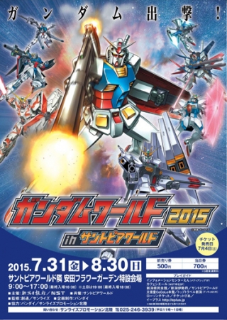 ガンダムシリーズの歴史を立体展示と映像で体感することができるイベント「ガンダムワールド2015 in サントピアワールド」が、7月31日(金)より新潟県阿賀野市「サントピアワールド」隣の安田フラワーガーデン特設会場にて開催される。