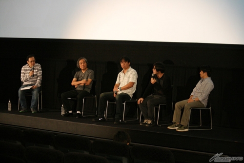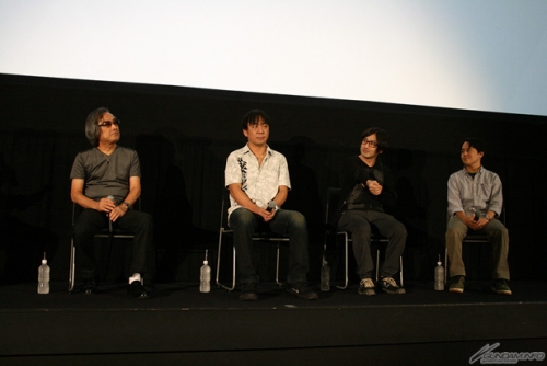 トークショーは、まず司会を務めるアニメーション研究家・五十嵐浩司氏が登壇し、続いてゲストの大河原氏、大張氏、馬場氏、小川氏が登場。挨拶も早々にさっそくトークがはじまった。