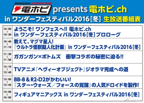 ▲「電撃ホビーウェブ presents 電ホビ.ch in ワンダーフェスティバル2016[冬]」生放送番組表